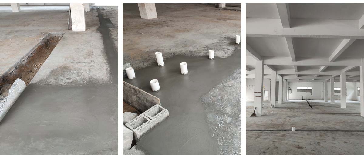 2021-7-30铜仁追花族科技有限公司厂房施工现场:地坪施工,车间通电