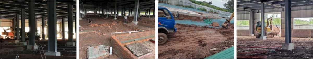 2021-8-24牧尚人家食品有限公司厂房装修现场: 1、排水管已完成100% 2、检查井已完成100%
