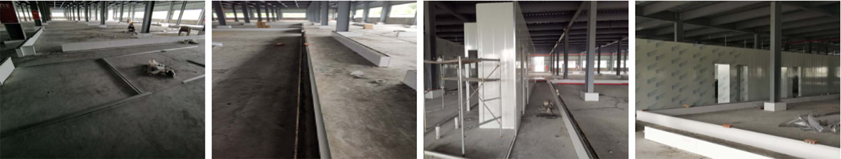 2021-10-17牧尚人家食品有限公司厂房装修现场:1、墙板安装完成80% 2、吊筋安装完成40%