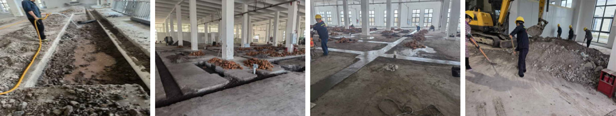 2023-2-22四川蜀风食品有限公司厂房装修现场:1,今日完成排水明沟及暗管沟放线工作。 2,今日完成挡水墙放线工作。 3,今日明沟及暗管沟切割已进场施工第1天