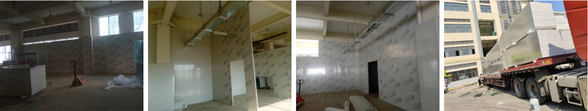 2023-5-7云南拾君季生物科技有限公司厂房装修现场:净化板材到场,净化隔断施工