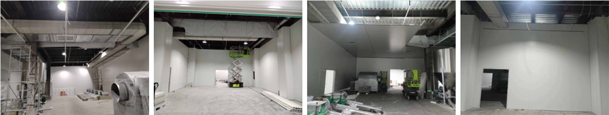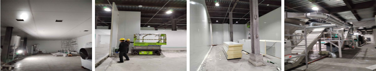2024-2-24四川君玲昌泰食品科技有限公司厂房施工现场:净化板顶板安装