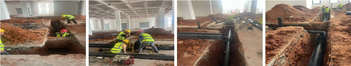 2024-6-9乐山纪六孃项目厂房装修现场:排水管道安装