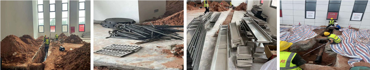 2024-6-18乐山纪六孃项目厂房装修现场:排水沟材料到场,室内外排水管道安装