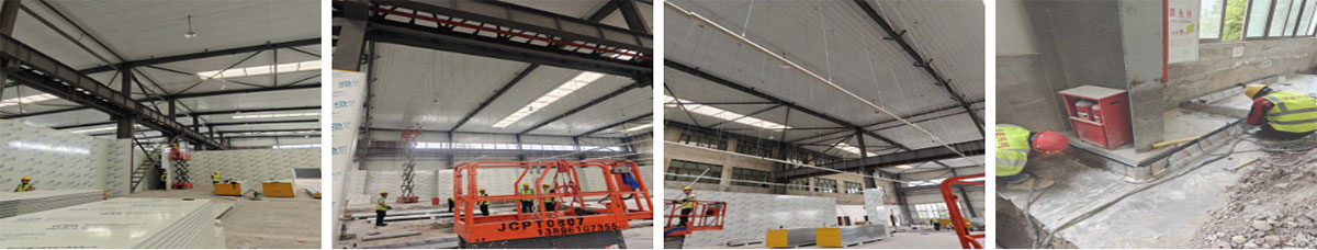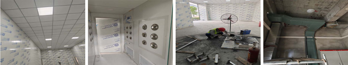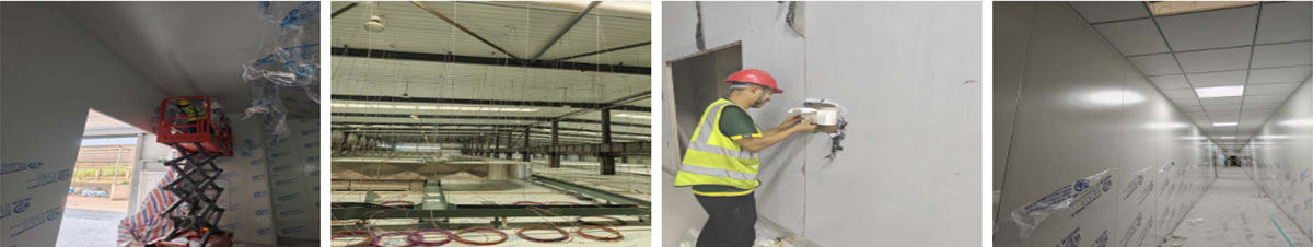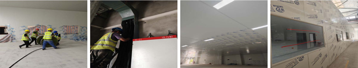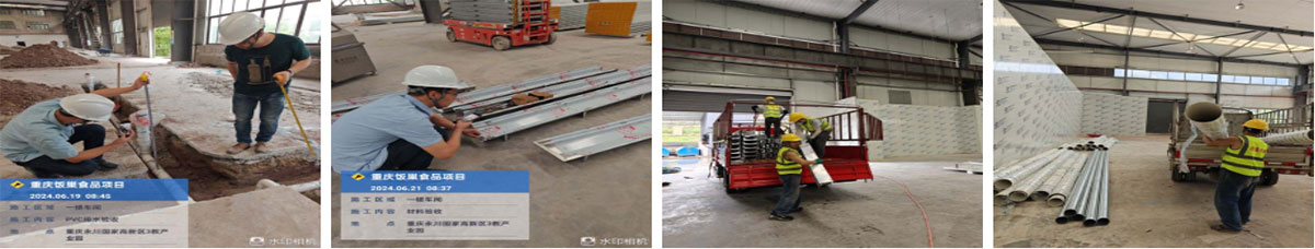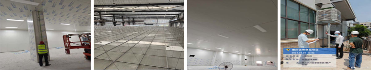 2024-6-24重庆饭巢项目厂房施工现场:净化隔断施工