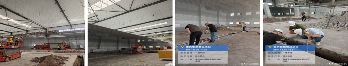 2024-6-9重庆饭巢项目厂房施工现场:现场放线,施工横幅悬挂