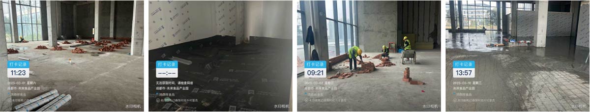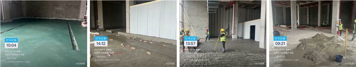 温江鸿鼎祥中央厨房项目厂房装修现场:车间土建施工,地坪施工,挡水墙施工