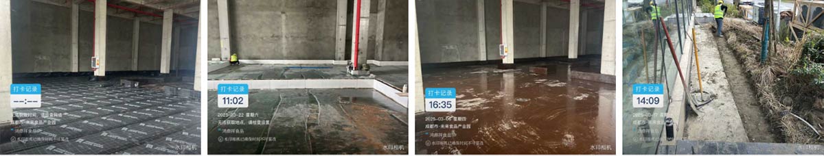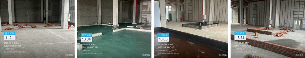 温江鸿鼎祥中央厨房项目厂房装修现场:车间防水施工,户外排水沟施工