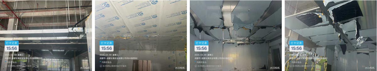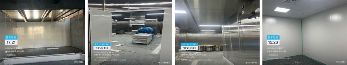 温江鸿鼎祥中央厨房项目厂房装修现场:隔断净化板材施工