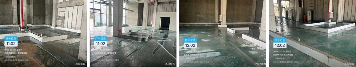 温江鸿鼎祥中央厨房项目厂房装修现场:中央厨房挡水墙施工,地坪施工