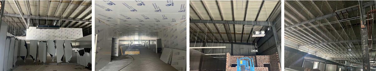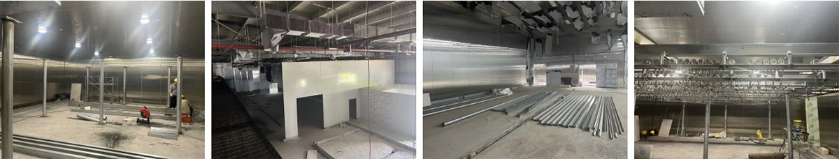 延安景泽食品肉制品项目厂房装修施工现场:净化隔断施工