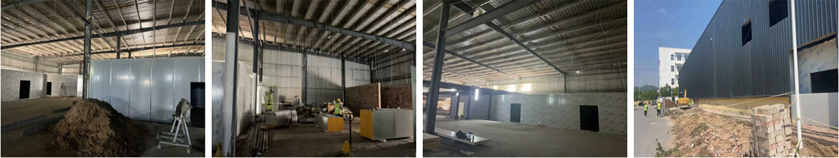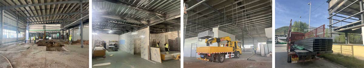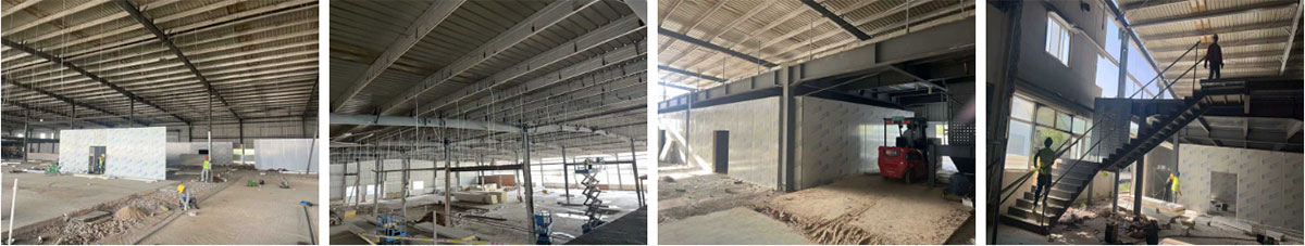 延安景泽食品肉制品项目厂房装修施工现场:隔断施工