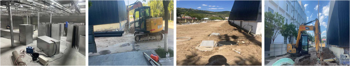 延安景泽食品肉制品项目厂房装修施工现场:户外排水沟施工,场地恢复