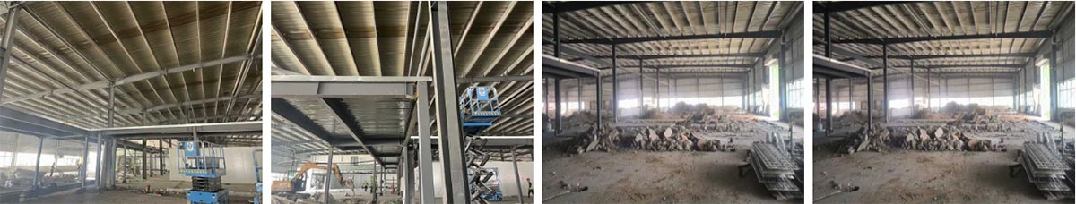 延安景泽食品肉制品项目厂房装修施工现场:车间二层钢构搭建