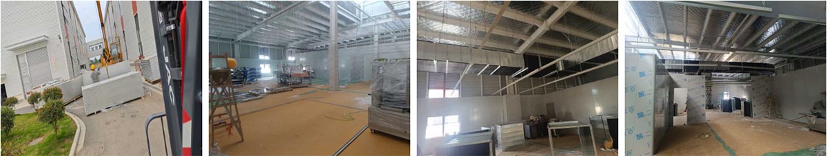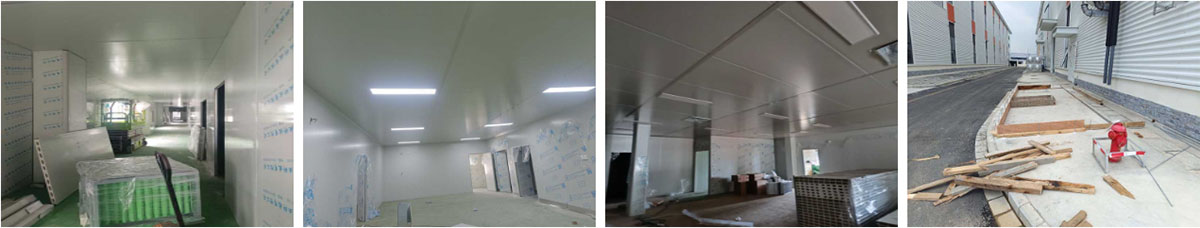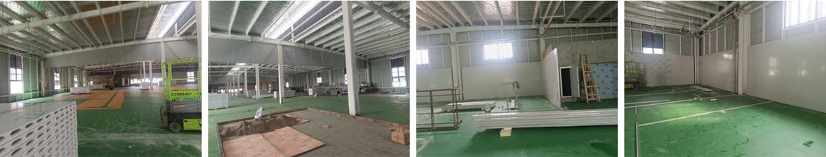 皇潮阁二期项目厂房装修现场:净化板材,建材到场