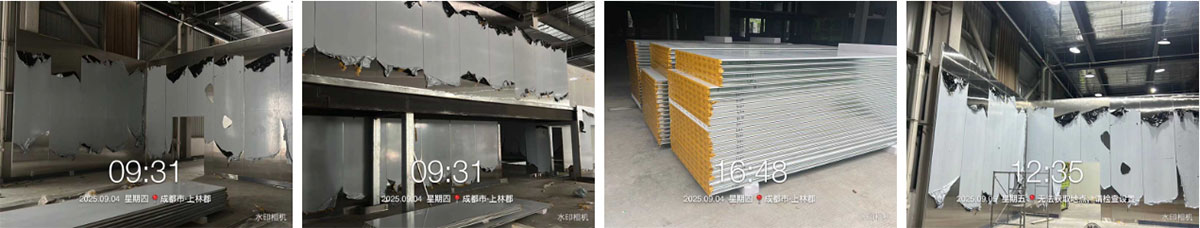 邛崃锦一食品肉制品项目施工现场:隔断净化板材施工