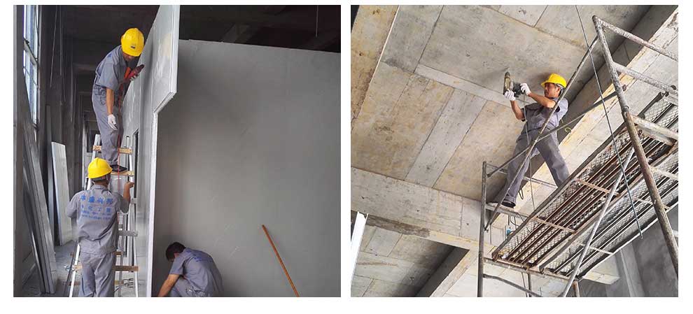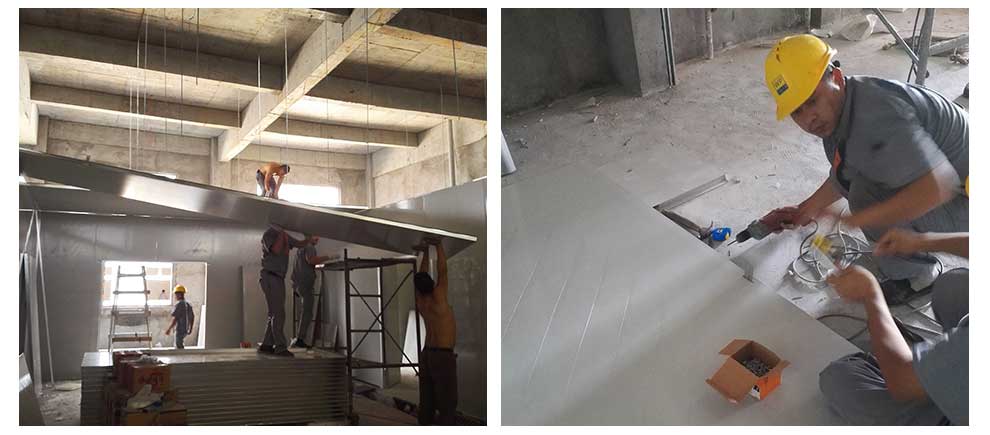 正在安装车间彩钢板和处理天花