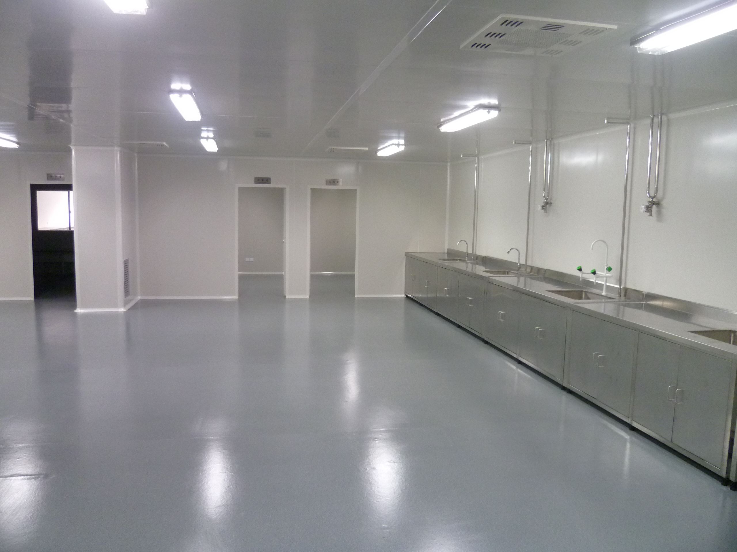 2、现在大多数企业采用彩钢夹心板密封吊顶,彩钢夹心板具有重量轻,整体强度大,整体性好,保温隔热发尘小等特点,比较适用于GMP生产厂房。但是吊顶的固定必须于结构主体相连,不能与设备,管线支架混用,吊顶与墙面要光滑连接,吊顶与送回风管口要可靠封闭。